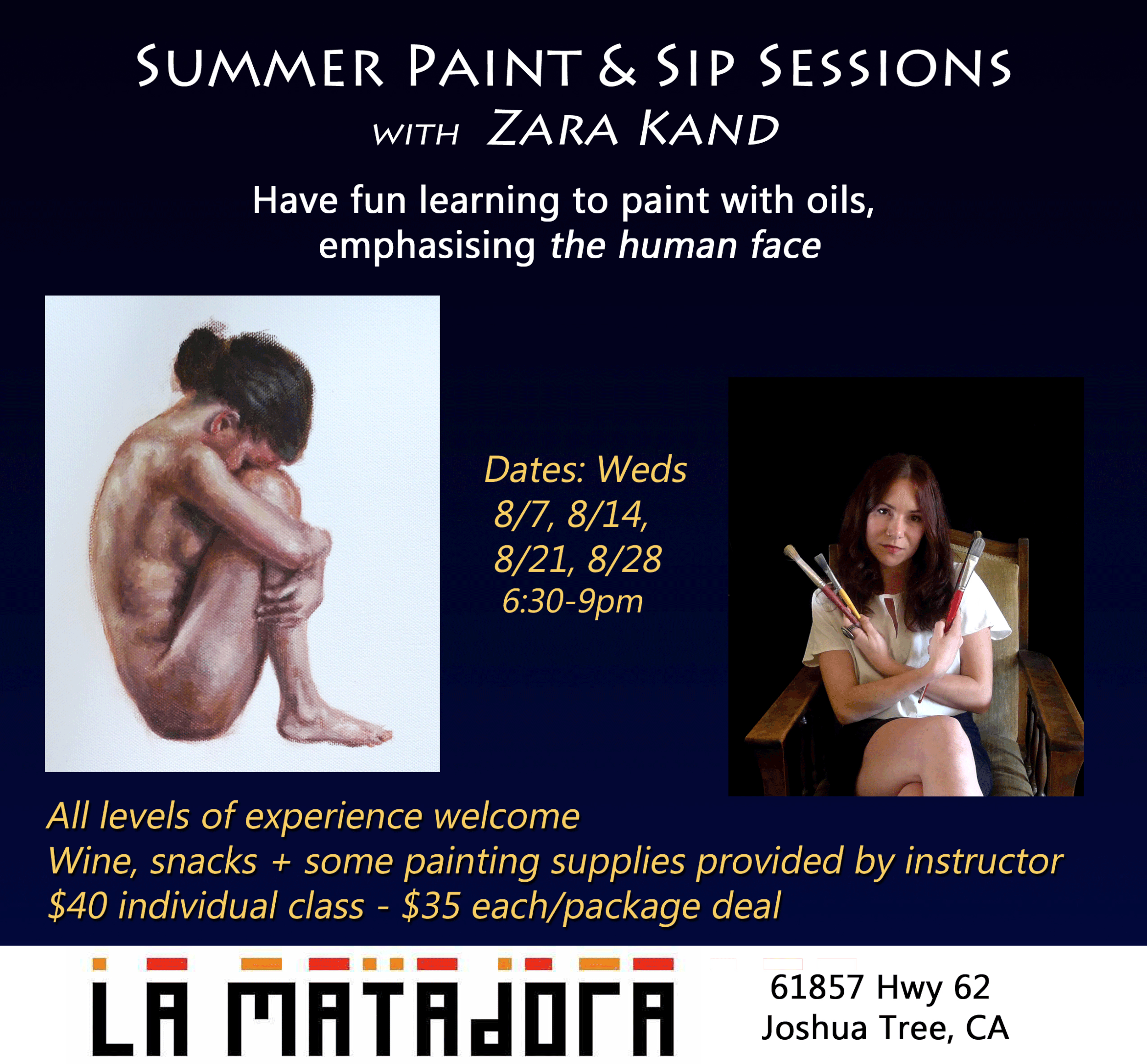 Summer Painting Workshop Aug 9 Written By Zara Summer Paint and SIP Sessions with Zara Kand at La Matadora Gallery, Joshua Tree, CA. Zara